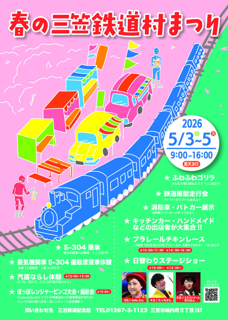 三笠鉄道村では、S-304形は、動態保存機として実際に走行しており、18歳以上の方で自力で機関車に乗車できる方であればどなたでも運転体験をすることができる「SL機関士体験クラブ(有料)」を開設しています。