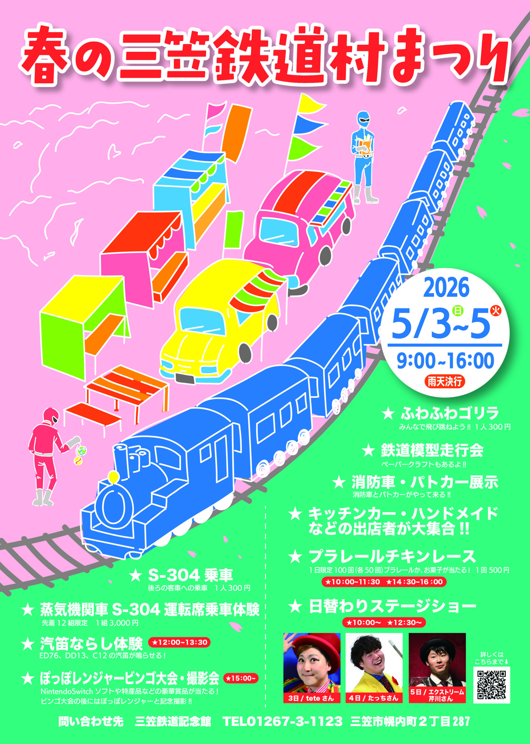 鉄道村では5月3日(日)・4日(月・祝)・5日(火・祝)の3日間にて春祭りを開催いたします。